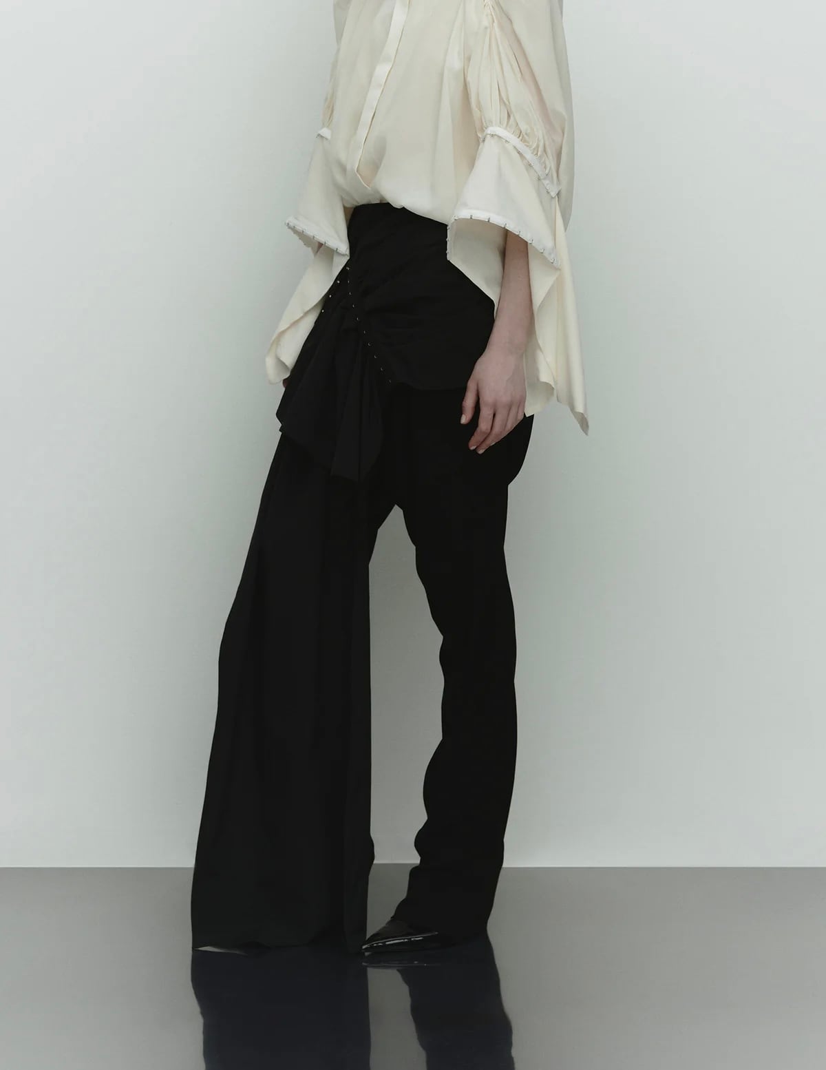 ・マリーアントワネットのシュミーズドレスのウエスト部分のサントゥールから着想を得たラップスカート